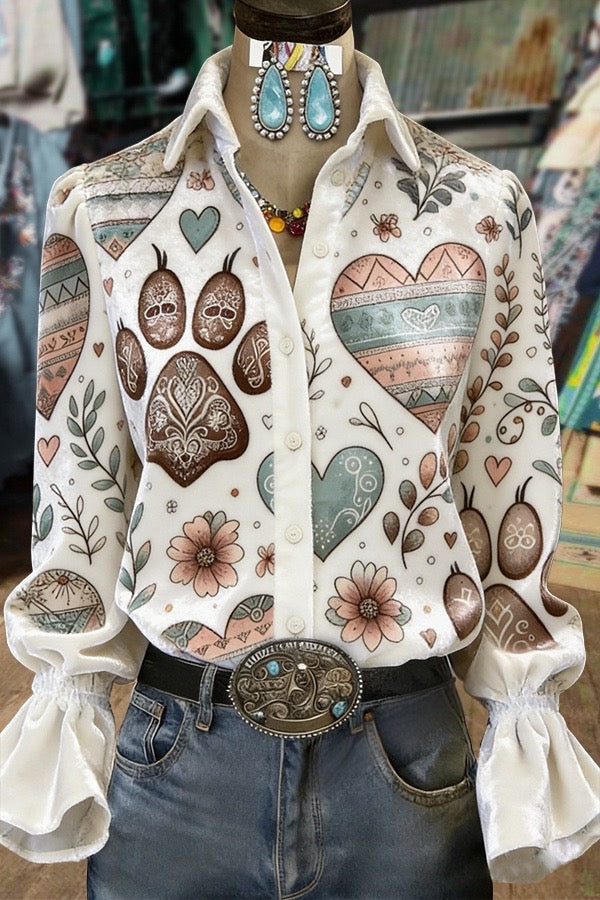 Colorful Art Heart Floral Print Velvet Valentine's Day Shirt