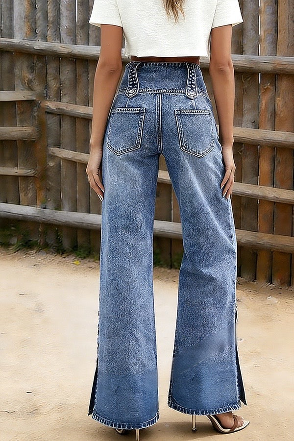 Elevate your denim game with these trendy high-waisted wide-leg jeans. Featuring a flattering high rise, vintage-inspired wash, and on-trend wide-leg silhouette, these jeans combine retro style with modern comfort for an effortlessly chic look.