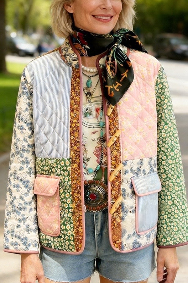 Mixed-Pattern Patchwork Quilted Jacket