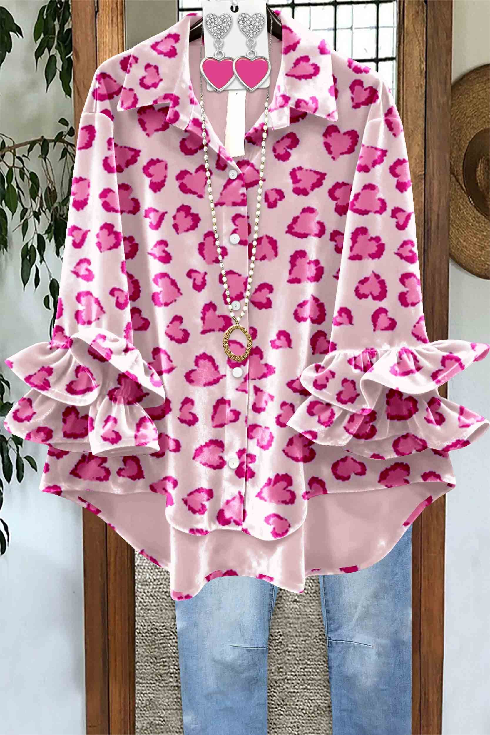 Valentine's Day Heart-Patterned Leopard Print Velvet Top