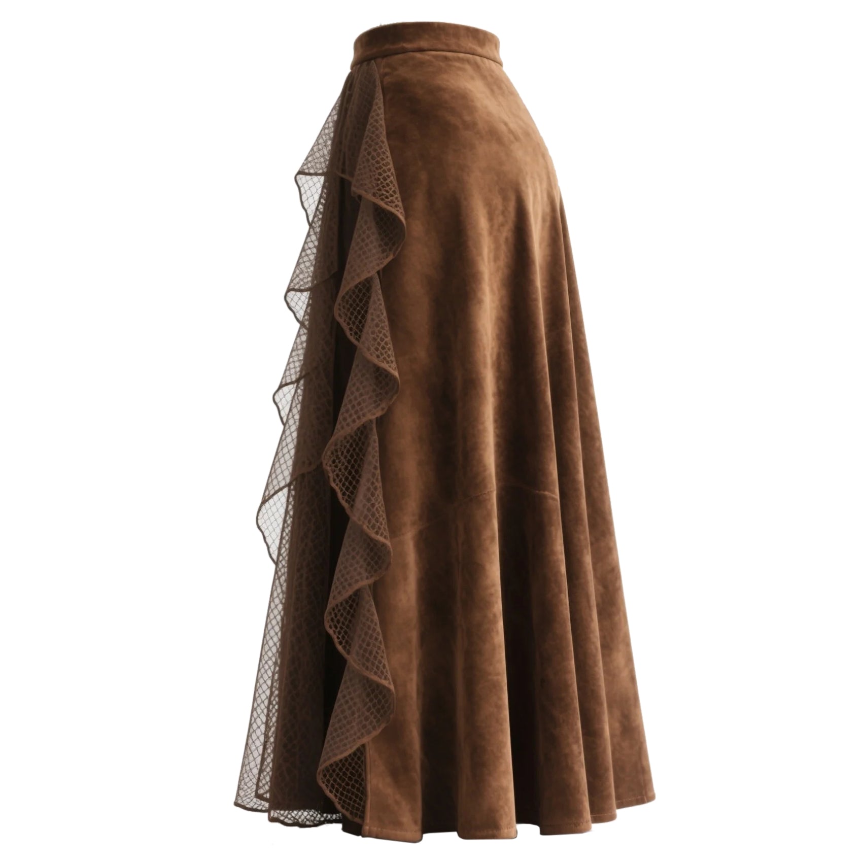 Retro Western Style Irregular Design Suede Patchwork Mesh Skirt