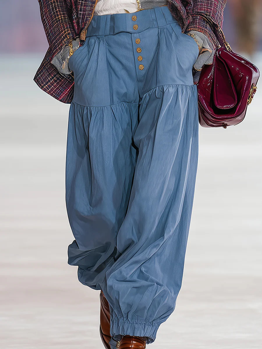 • Design Elements: Flared leg design, elastic waistband, and a subtle logo patch