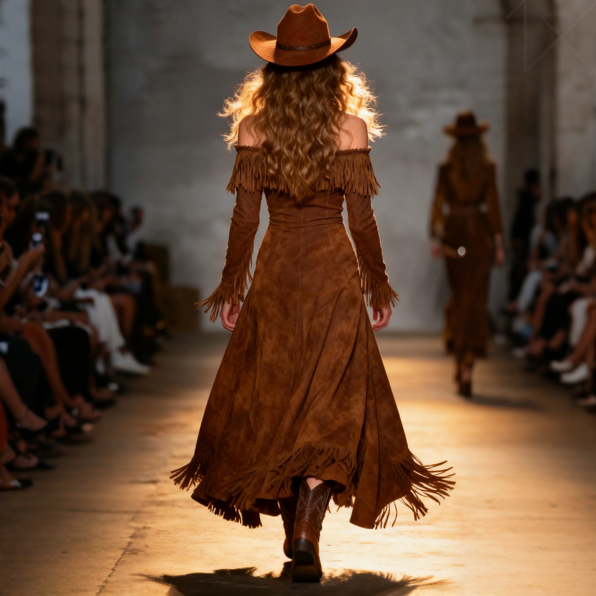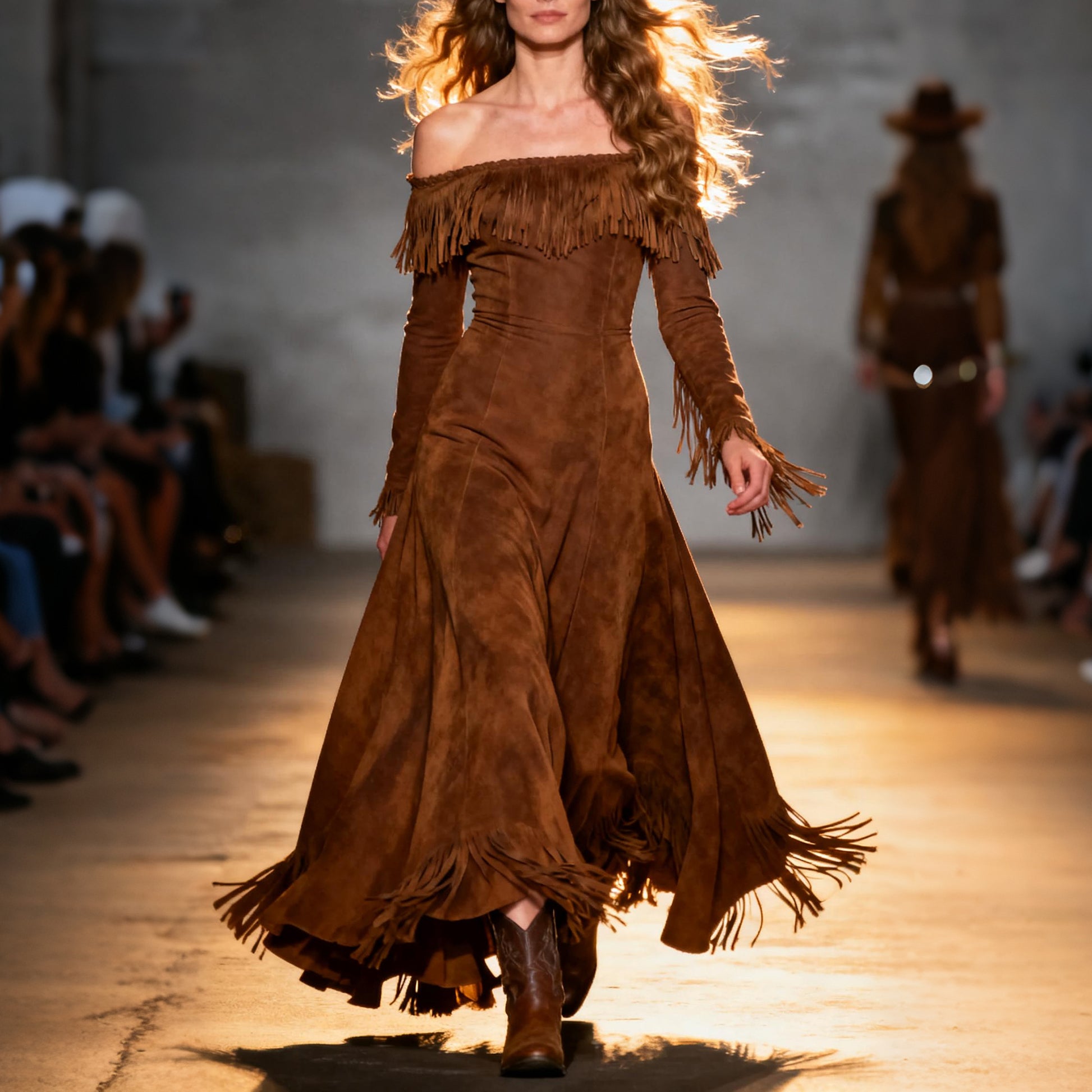 Women's Retro One-Shoulder Tassel Long Sleeve Long Dress
